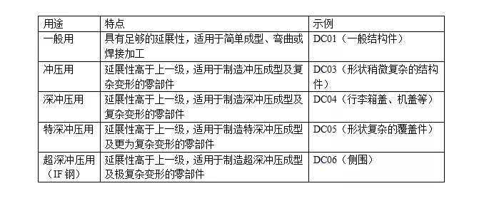 以低碳钢板及钢带为例不同用途及与之对应的特点: