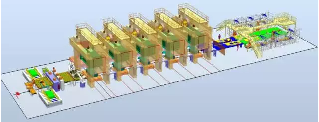 随着机器人及自动化技术的发展,现在的冲压车间已形成流水线式的自动化整线。